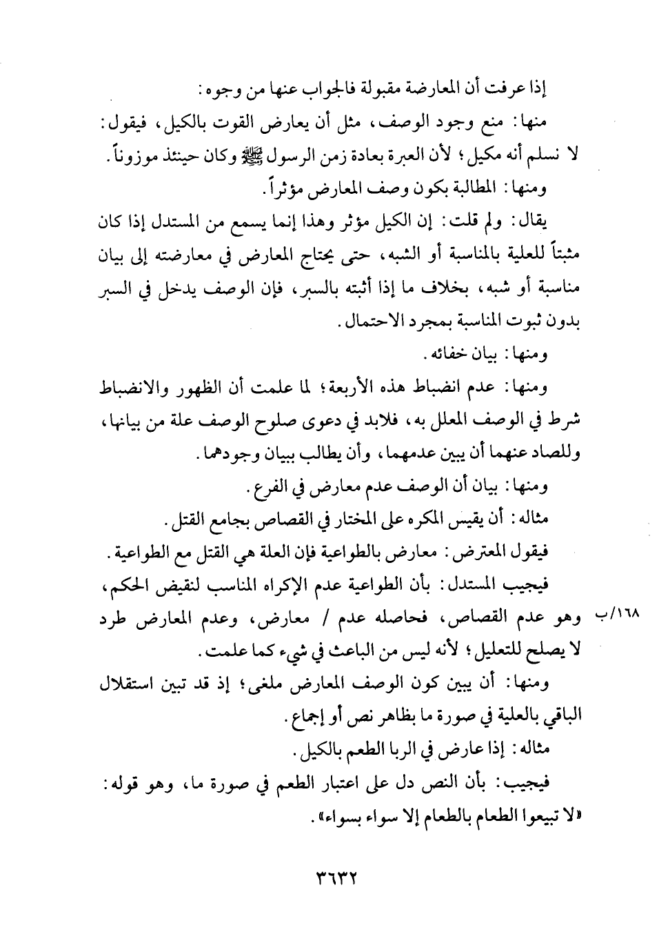 يُقَال: وَلم قلت: إِن الْكَيْل مُؤثر وَهَذَا إِنَّمَا يسمع من الْمُسْتَدلّ إِذا كَانَ مثبتا للعلية بالمناسبة أَو الشّبَه، حَتَّى يحْتَاج الْمعَارض فِي معارضته إِلَى بَيَان مُنَاسبَة أَو شبه، بِخِلَاف مَا إِذا أثْبته بالسبر، فَإِن الْوَصْف يدْخل فِي السبر بِدُونِ ثُبُوت الْمُنَاسبَة بِمُجَرَّد الِاحْتِمَال.