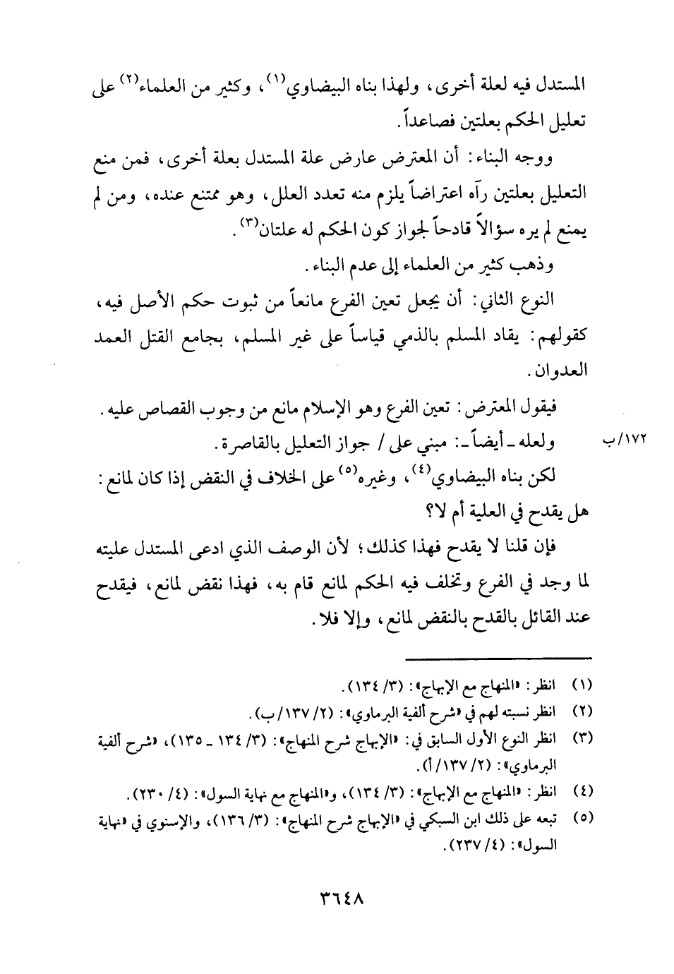 الْمُسْتَدلّ فِيهِ لعِلَّة أُخْرَى، وَلِهَذَا بناه الْبَيْضَاوِيّ، وكثيسر من الْعلمَاء على تَعْلِيل الحكم بعلتين فَصَاعِدا.