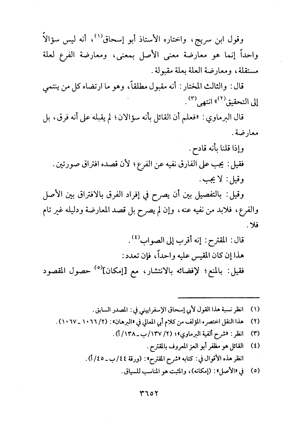 وَقَول ابْن سُرَيج، وَاخْتَارَهُ الْأُسْتَاذ أَبُو إِسْحَاق، أَنه لَيْسَ سؤالا وَاحِدًا إِنَّمَا هُوَ مُعَارضَة معنى الأَصْل بِمَعْنى، ومعارضة الْفَرْع لعِلَّة مُسْتَقلَّة، ومعارضة الْعلَّة بعلة مَقْبُولَة.