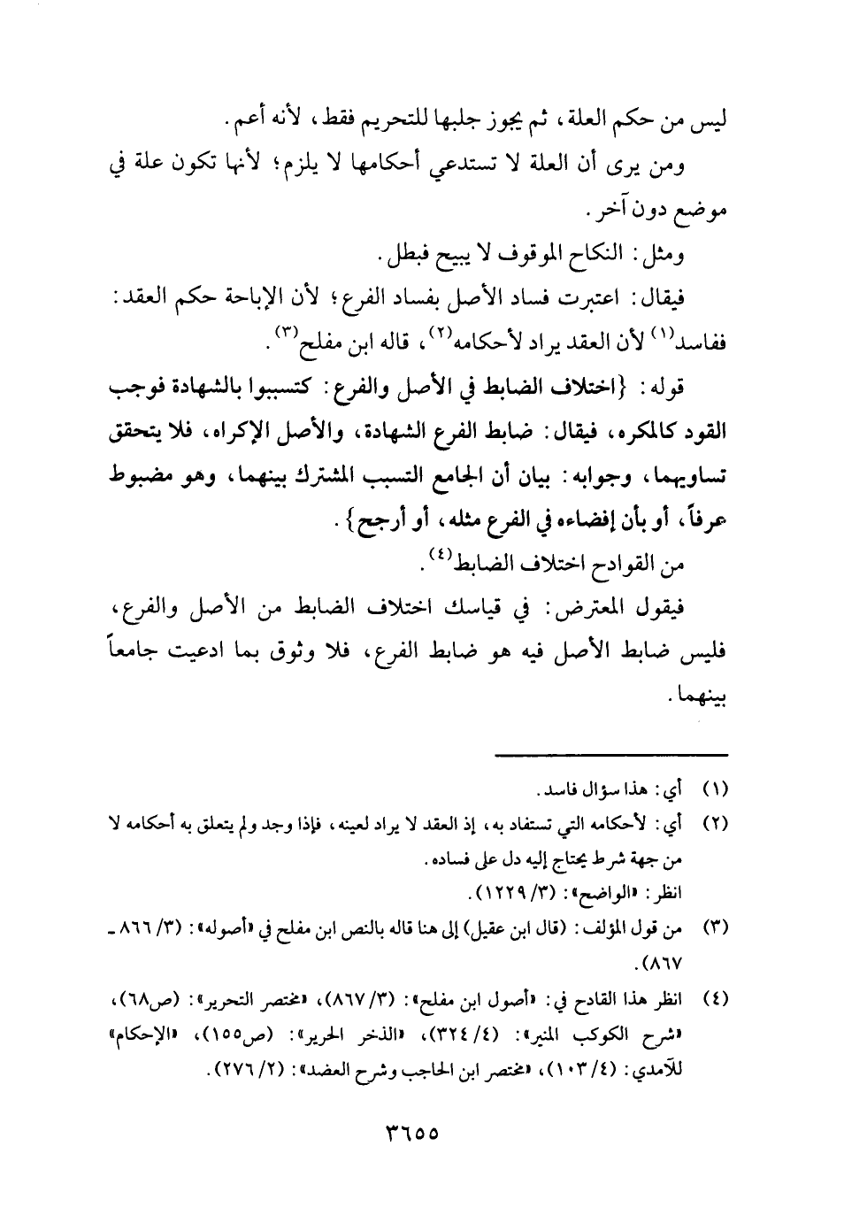 لَيْسَ من حكم الْعلَّة، ثمَّ يجوز جلبها للتَّحْرِيم فَقَط، لِأَنَّهُ أَعم.