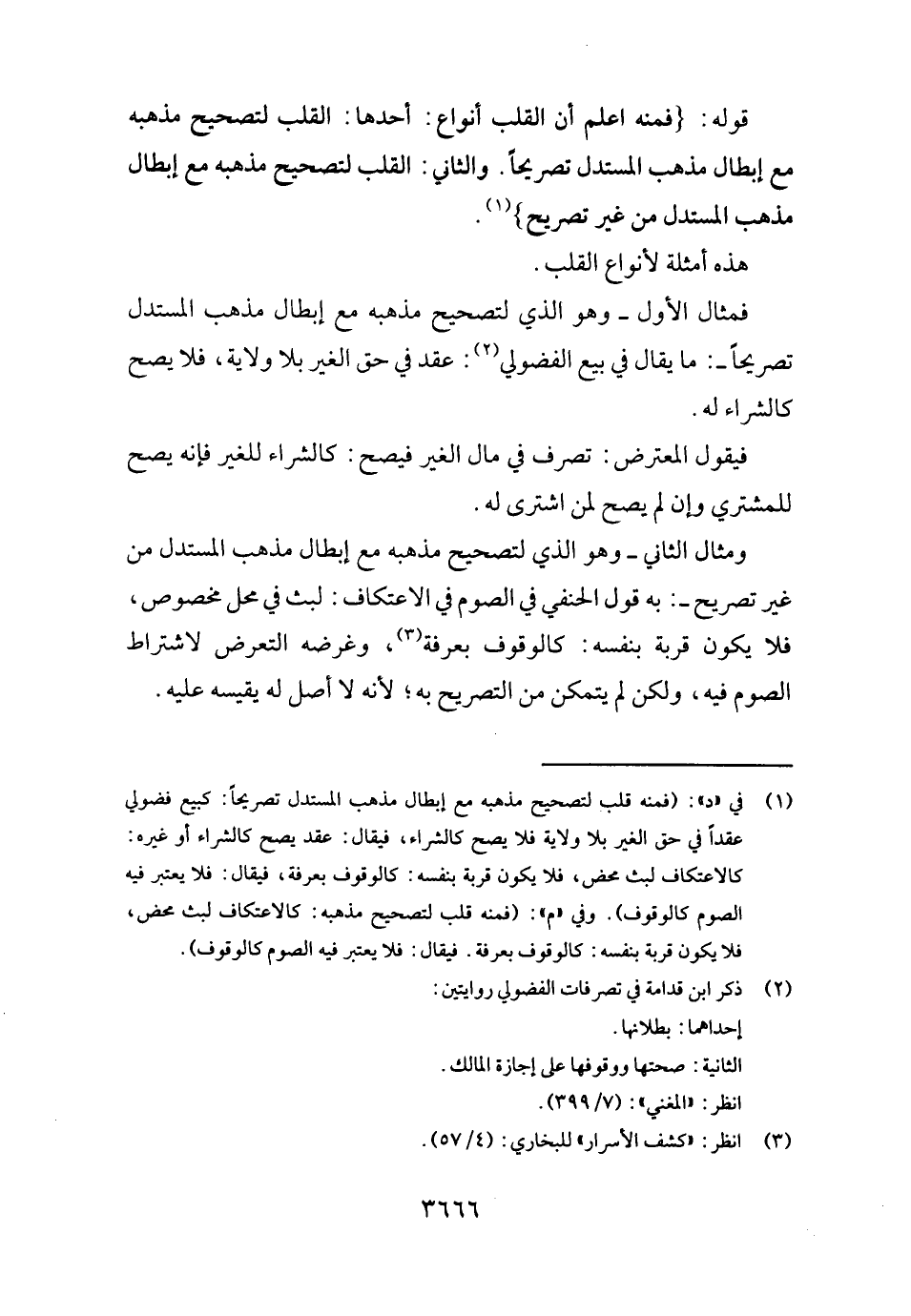 قَوْله: (فَمِنْهُ اعْلَم أَن الْقلب أَنْوَاع: أَحدهَا: الْقلب لتصحيح مذْهبه مَعَ إبِْطَال مَذْهَب الْمُسْتَدلّ تَصْرِيحًا. وَالثَّانِي: الْقلب لتصحيح مذْهبه مَعَ إبِْطَال مَذْهَب الْمُسْتَدلّ من غير تَصْرِيح) .