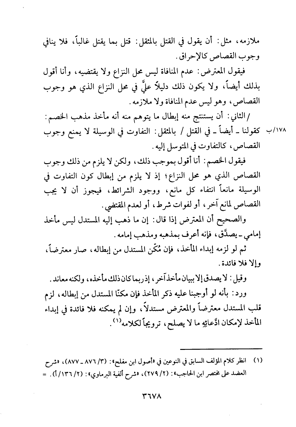 ورد: بِأَنَّهُ لَو أَوجَبْنَا عَلَيْهِ ذكر المأخذ فَإِن مكنا الْمُسْتَدلّ من إِبْطَاله، لزم قلب الْمُسْتَدلّ مُعْتَرضًا والمعترض مستدلا، وَإِن لم يُمكنهُ فَلَا فَائِدَة فِي إبداء المأخذ لِإِمْكَان ادعائه مَا لَا يصلح، ترويجا لكَلَامه.