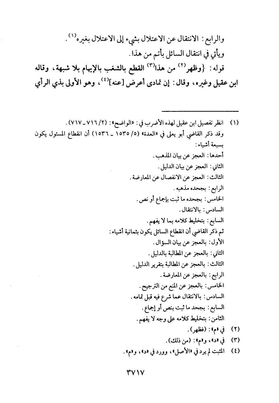 وَالرَّابِع: الِانْتِقَال عَن الاعتلال بِشَيْء إِلَى الاعتلال بِغَيْرِهِ.