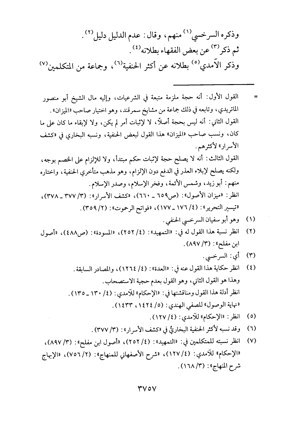 وَذكر الْآمِدِيّ بُطْلَانه عَن أَكثر الْحَنَفِيَّة، وَجَمَاعَة من الْمُتَكَلِّمين