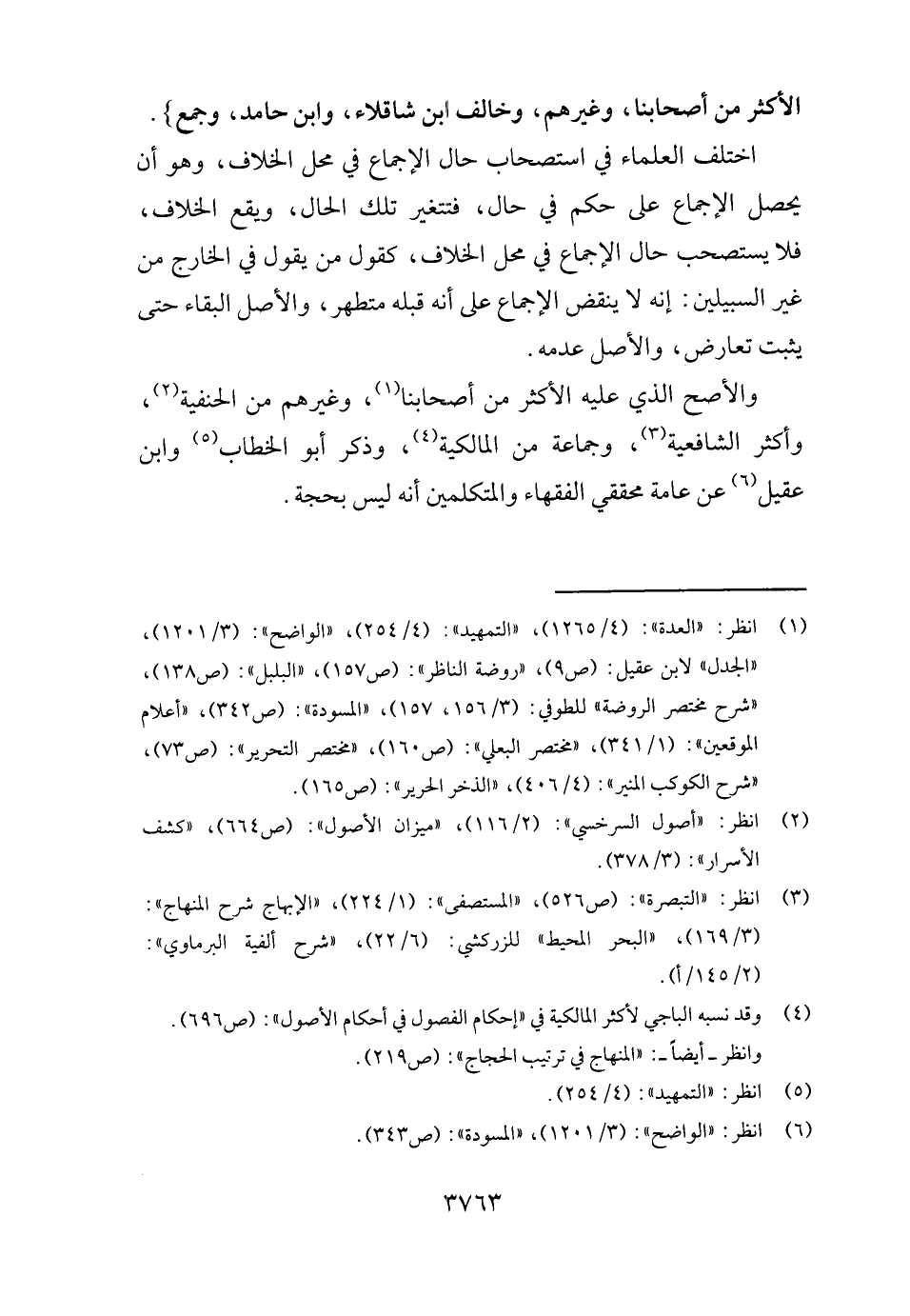 وَالأَصَح الَّذِي عَلَيْهِ الْأَكْثَر من أَصْحَابنَا، وَغَيرهم من الْحَنَفِيَّة، وَأكْثر الشَّافِعِيَّة، وَجَمَاعَة من الْمَالِكِيَّة، وَذكر أَبُو الْخطاب وَابْن عقيل عَن عَامَّة محققي الْفُقَهَاء والمتكلمين أَنه لَيْسَ بِحجَّة.