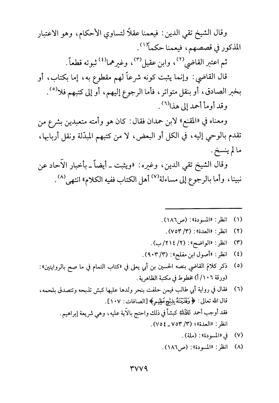 وَقَالَ الشَّيْخ تَقِيّ الدّين، وَغَيره: " وَيثبت - أَيْضا - بأخبار الْآحَاد عَن نَبينَا، وَأما بِالرُّجُوعِ إِلَى مساءلة أهل الْكتاب فَفِيهِ الْكَلَام " انْتهى.