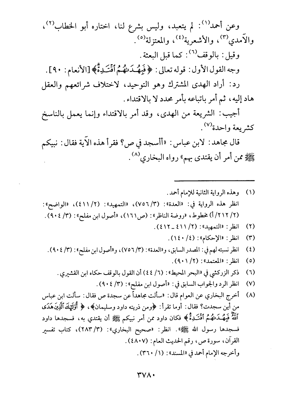 قَالَ مُجَاهِد: لِابْنِ عَبَّاس: " أأسجد فِي ص؟ فَقَرَأَ هَذِه الْآيَة فَقَالَ: نَبِيكُم - صَلَّى اللَّهُ عَلَيْهِ وَسَلَّم َ - مِمَّن أَمر أَن يقْتَدى بهم " رَوَاهُ البُخَارِيّ.