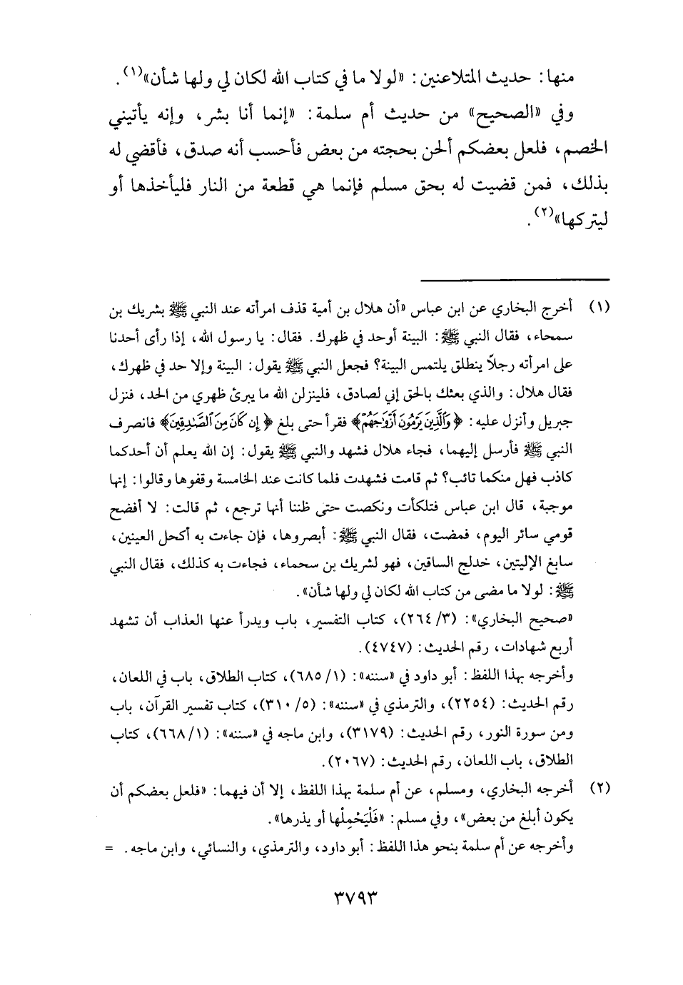مِنْهَا: حَدِيث المتلاعنين: " لَوْلَا مَا فِي كتاب الله لَكَانَ لي وَلها شَأْن ".