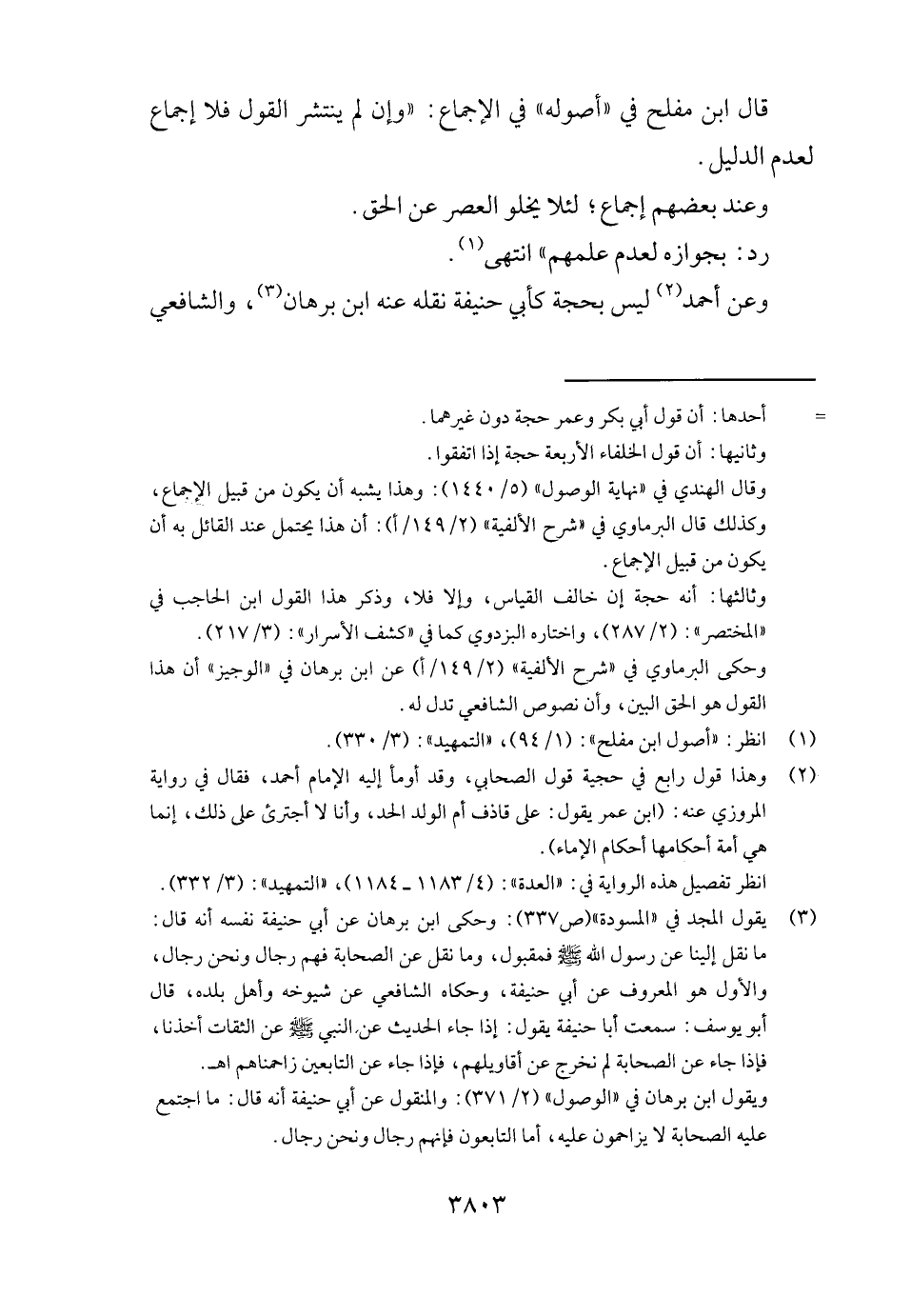 قَالَ ابْن مُفْلِح فِي " أُصُوله " فِي الْإِجْمَاع: " وَإِن لم ينتشر القَوْل فَلَا إِجْمَاع لعدم الدَّلِيل.