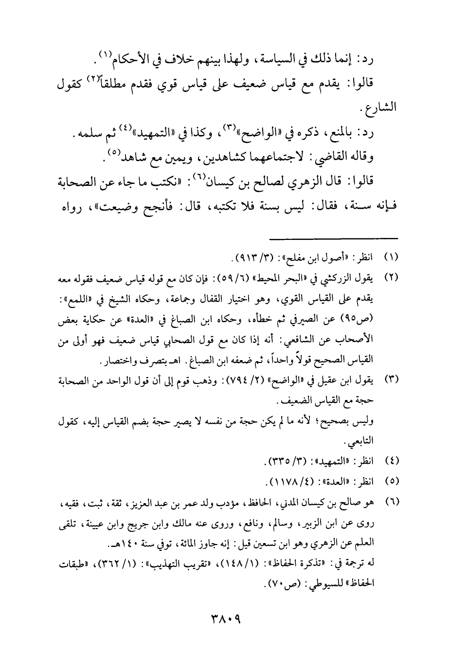 قَالُوا: قَالَ الزُّهْرِيّ لصالح بن كيسَان: " نكتب مَا جَاءَ عَن الصَّحَابَة فَإِنَّهُ سنة، فَقَالَ: لَيْسَ بِسنة فَلَا تكتبه، قَالَ: فأنجح وضيعت "، رَوَاهُ