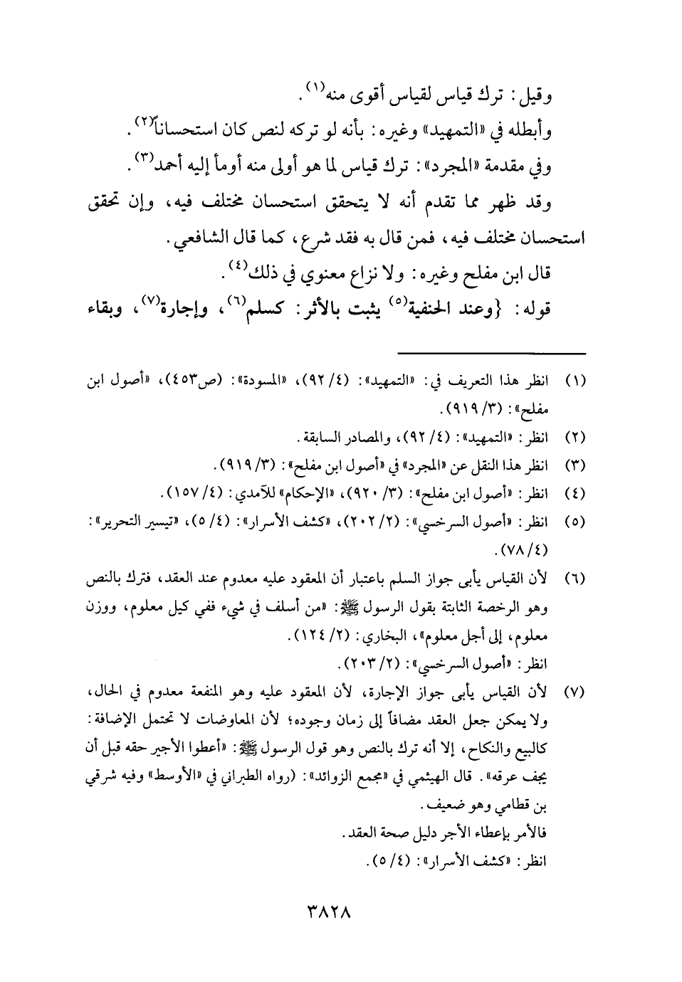 قَوْله: {وَعند الْحَنَفِيَّة يثبت بالأثر: كسلم، وَإِجَارَة، وَبَقَاء