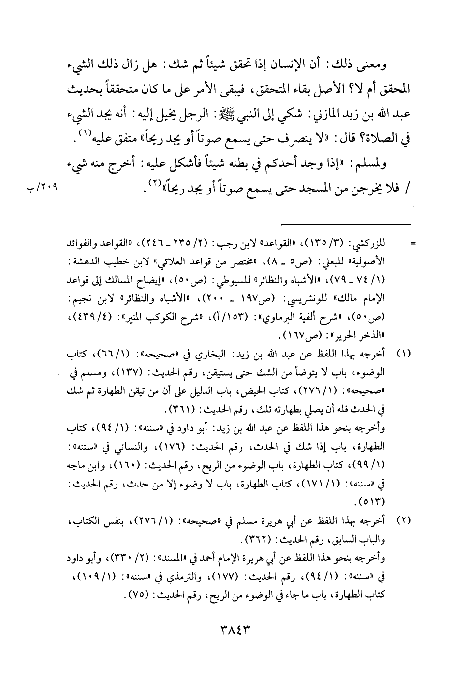 وَمعنى ذَلِك: أَن الْإِنْسَان إِذا تحقق شَيْئا ثمَّ شكّ: هَل زَالَ ذَلِك الشَّيْء الْمُحَقق أم لَا؟ الأَصْل بَقَاء المتحقق، فَيبقى الْأَمر على مَا كَانَ متحققا بِحَدِيث عبد الله بن زيد الْمَازِني: شكي إِلَى النَّبِي - صَلَّى اللَّهُ عَلَيْهِ وَسَلَّم َ -: الرجل يخيل إِلَيْهِ: أَنه يجد الشَّيْء فِي الصَّلَاة؟ قَالَ: " لَا ينْصَرف حَتَّى يسمع صَوتا أَو يجد ريحًا " مُتَّفق عَلَيْهِ.