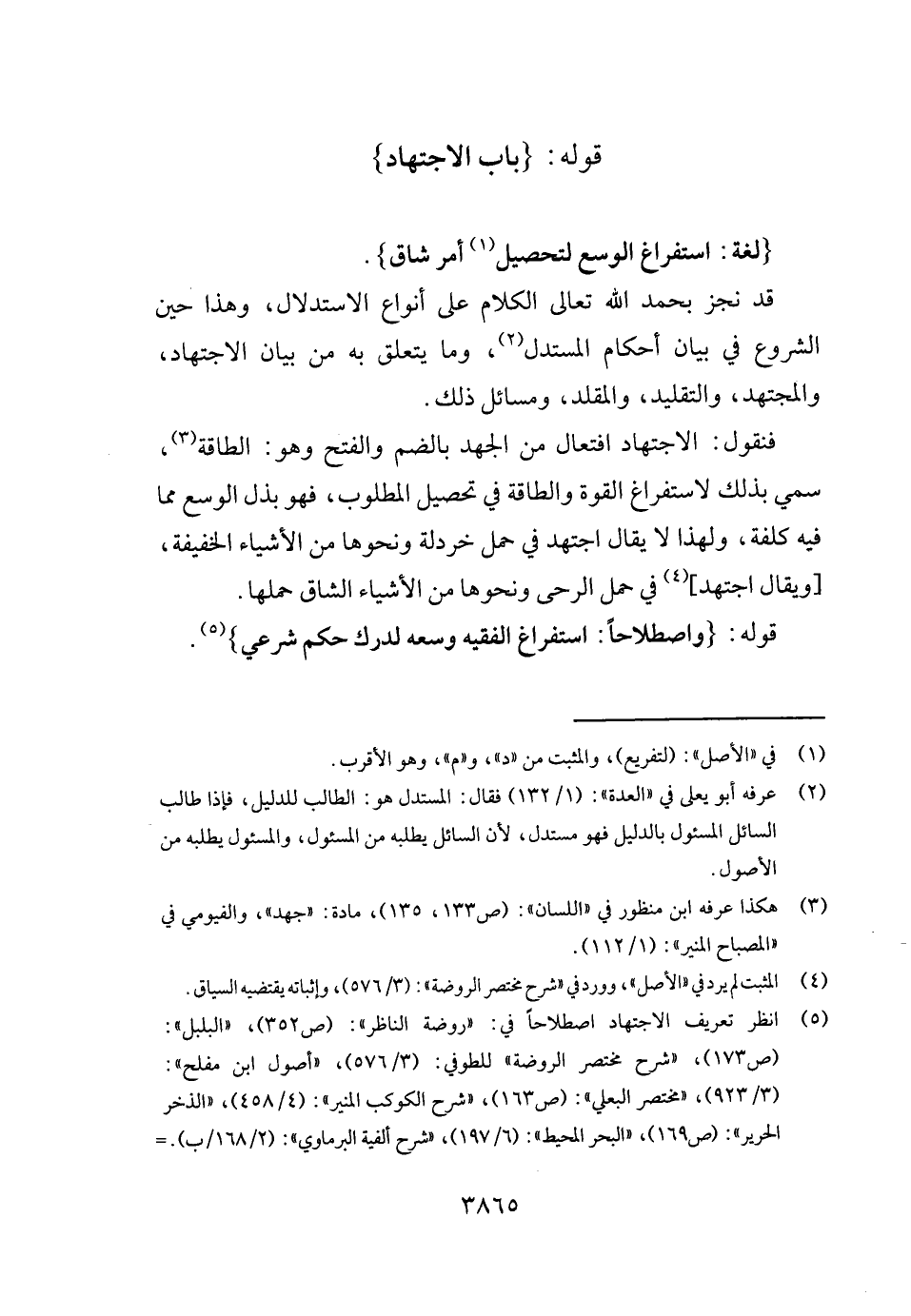 فَنَقُول: الِاجْتِهَاد افتعال من الْجهد بِالضَّمِّ وَالْفَتْح وَهُوَ: الطَّاقَة، سمي بذلك لاستفراغ الْقُوَّة والطاقة فِي تَحْصِيل الْمَطْلُوب، فَهُوَ بذل الوسع مِمَّا فِيهِ كلفة، وَلِهَذَا لَا يُقَال اجْتهد فِي حمل خردلة وَنَحْوهَا من الْأَشْيَاء الْخَفِيفَة، [وَيُقَال اجْتهد] فِي حمل الرَّحَى وَنَحْوهَا من الْأَشْيَاء الشاق حملهَا.