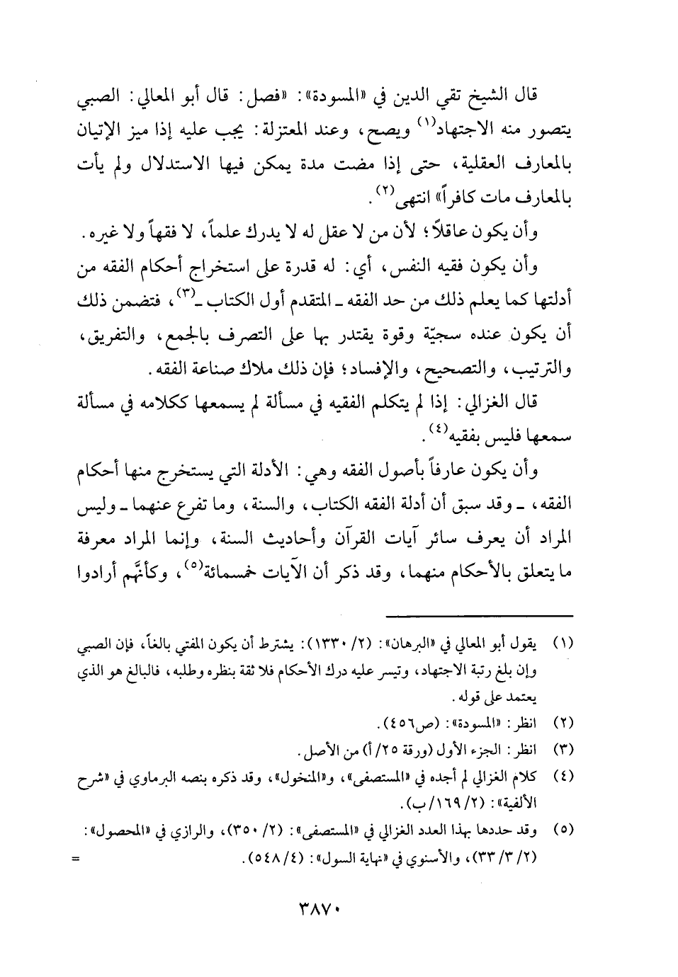 قَالَ الشَّيْخ تَقِيّ الدّين فِي " المسودة ": " فصل: قَالَ أَبُو الْمَعَالِي: الصَّبِي يتَصَوَّر مِنْهُ الِاجْتِهَاد وَيصِح، وَعند الْمُعْتَزلَة: يجب عَلَيْهِ إِذا ميز الْإِتْيَان بالمعارف الْعَقْلِيَّة، حَتَّى إِذا مَضَت مُدَّة يُمكن فِيهَا الِاسْتِدْلَال وَلم يَأْتِ بالمعارف مَاتَ كَافِرًا " انْتهى.
