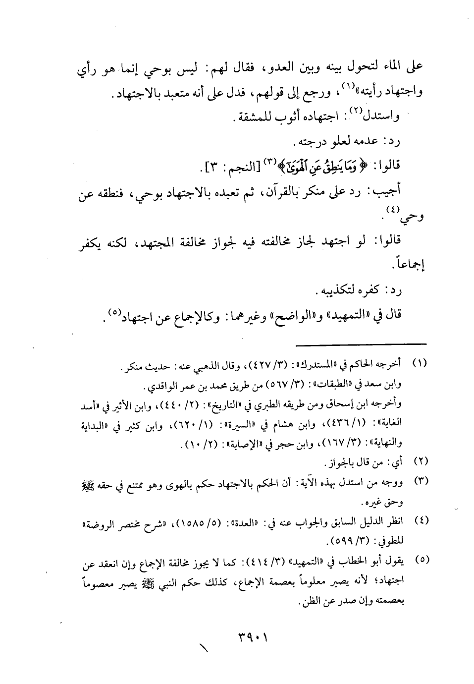 على المَاء لتحول بَينه وَبَين الْعَدو، فَقَالَ لَهُم: لَيْسَ بِوَحْي إِنَّمَا هُوَ رَأْي واجتهاد رَأَيْته "، وَرجع إِلَى قَوْلهم، فَدلَّ على أَنه متعبد بِالِاجْتِهَادِ.