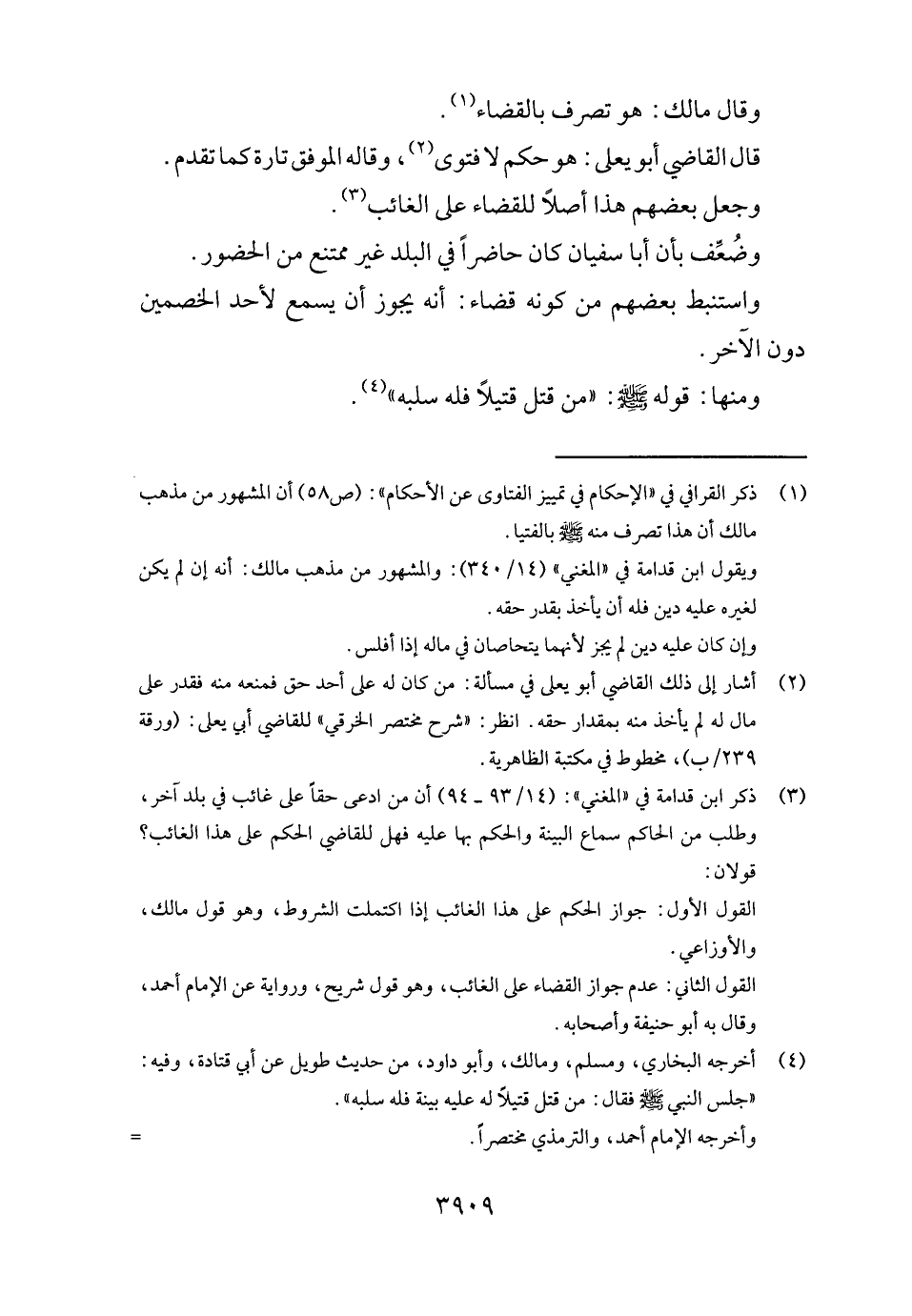 قَالَ القَاضِي أَبُو يعلى: هُوَ حكم لَا فَتْوَى، وَقَالَهُ الْمُوفق تَارَة كَمَا تقدم.