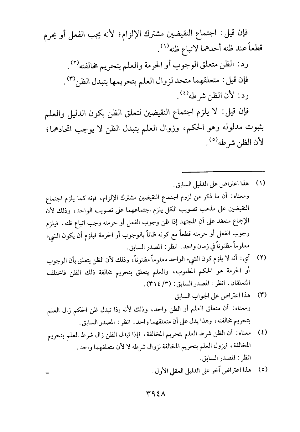 فَإِن قيل: اجْتِمَاع النقيضين مُشْتَرك الْإِلْزَام؛ لِأَنَّهُ يجب الْفِعْل أَو يحرم قطعا عِنْد ظَنّه أَحدهمَا لاتباعه ظَنّه.