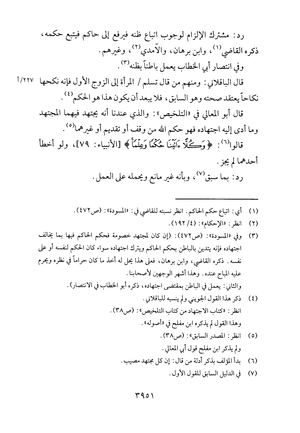 رد: مُشْتَرك الْإِلْزَام لوُجُوب اتِّبَاع ظَنّه فيرفع إِلَى حَاكم فَيتبع حكمه، ذكره القَاضِي، وَابْن برهَان، والآمدي، وَغَيرهم.