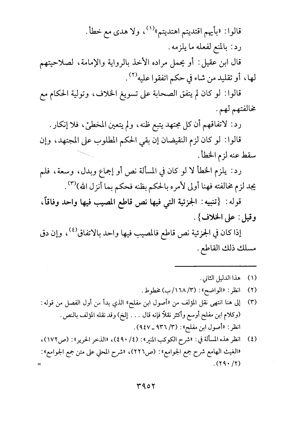 رد: لاتفاقهم أَن كل مُجْتَهد يتبع ظَنّه، وَلم يتَعَيَّن المخطيء فَلَا إِنْكَار.