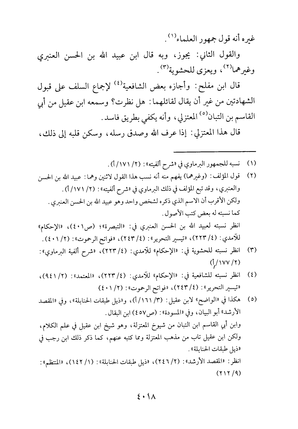 وَالْقَوْل الثَّانِي: يجوز، وَبِه قَالَ ابْن عبيد الله بن الْحسن الْعَنْبَري وَغَيرهمَا، ويعزى للحشوية.