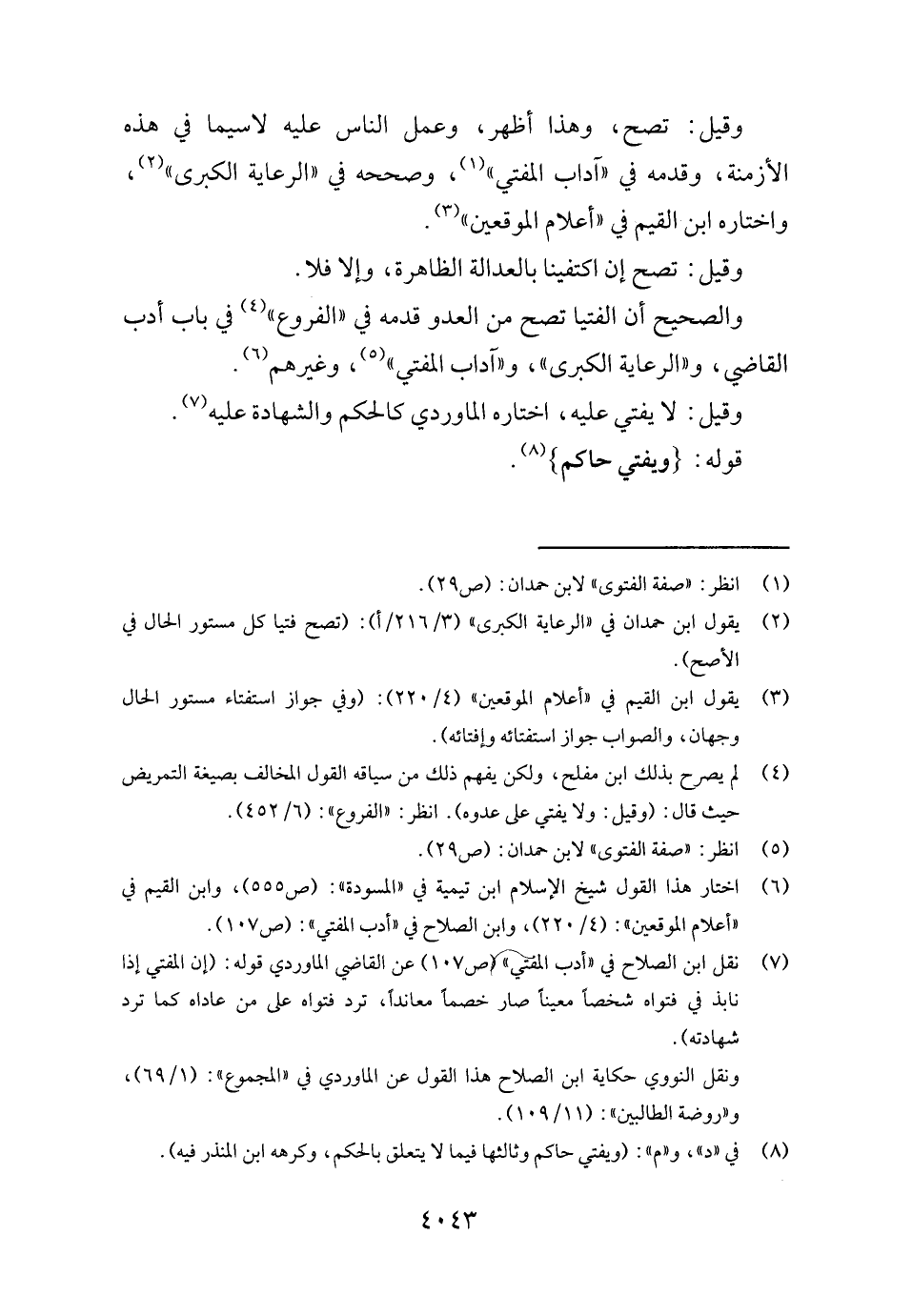 وَالصَّحِيح أَن الْفتيا تصح من الْعَدو قدمه فِي " الْفُرُوع " فِي بَاب أدب القَاضِي، و " الرِّعَايَة الْكُبْرَى "، و " آدَاب الْمُفْتِي "، وَغَيرهم.