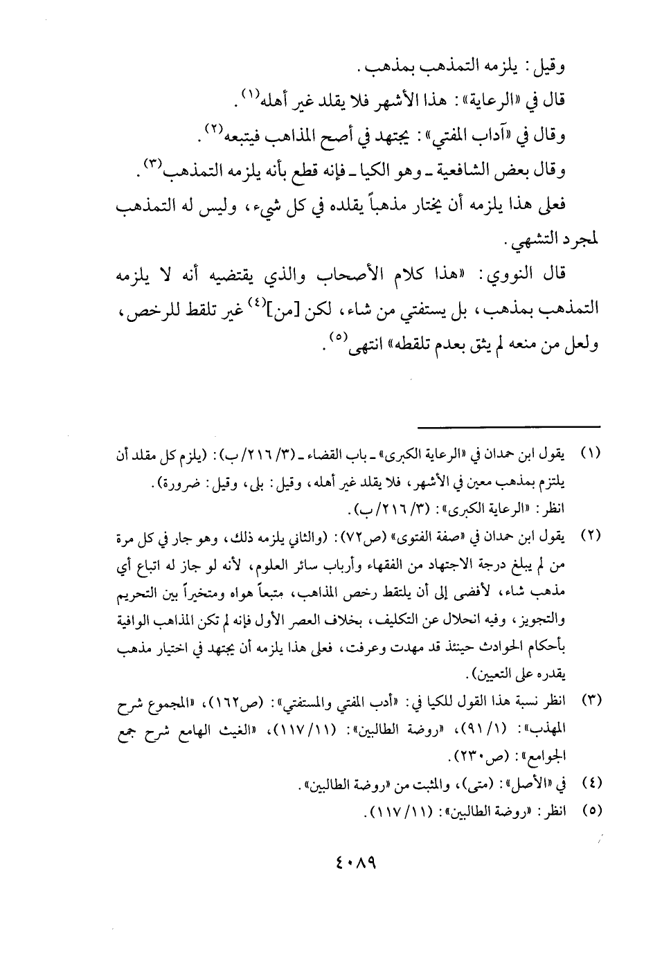 قَالَ النَّوَوِيّ: " هَذَا كَلَام الْأَصْحَاب وَالَّذِي يَقْتَضِيهِ أَنه لَا يلْزمه التمذهب بِمذهب، بل يستفتي من شَاءَ، لَكِن [من] غير تلقط للرخص، وَلَعَلَّ من مَنعه لم يَثِق بِعَدَمِ تلقطه " انْتهى.
