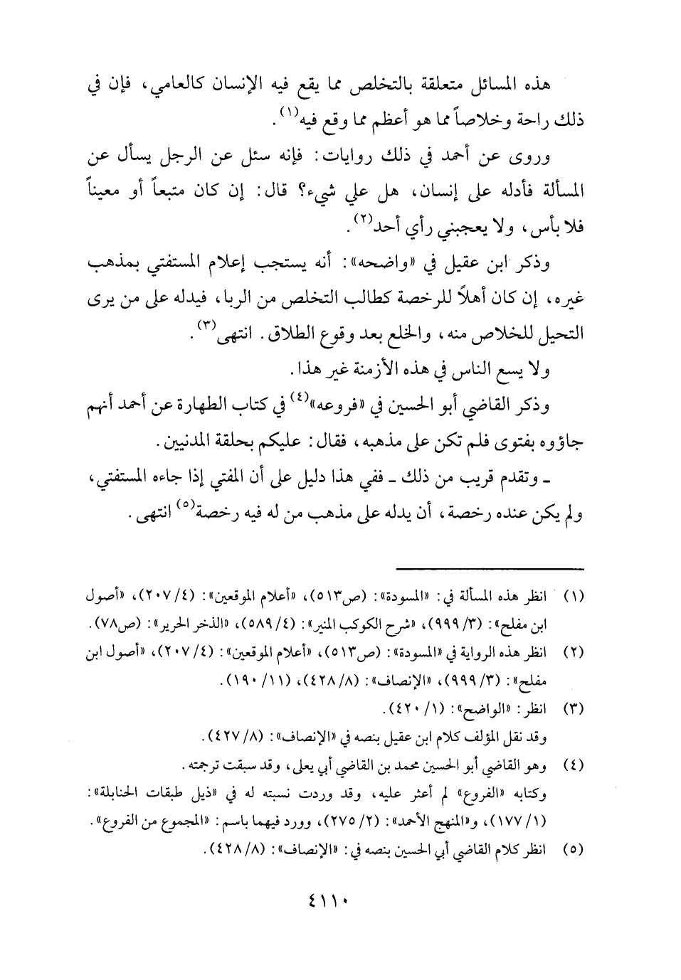 وَذكر القَاضِي أَبُو الْحُسَيْن فِي " فروعه " فِي كتاب الطَّهَارَة عَن أَحْمد أَنهم جاؤوه بفتوى فَلم تكن على مذْهبه، فَقَالَ: عَلَيْكُم بِحَلقَة الْمَدَنِيين.