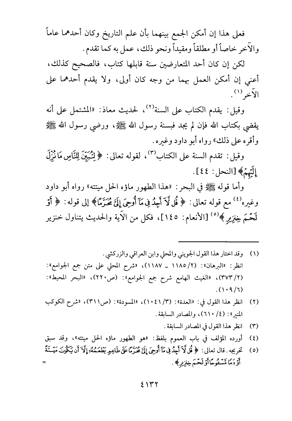 وَقيل: تقدم السّنة على الْكتاب، لقَوْله تَعَالَى: {لتبين للنَّاس مَا نزل إِلَيْهِم} [النَّحْل: ٤٤] .