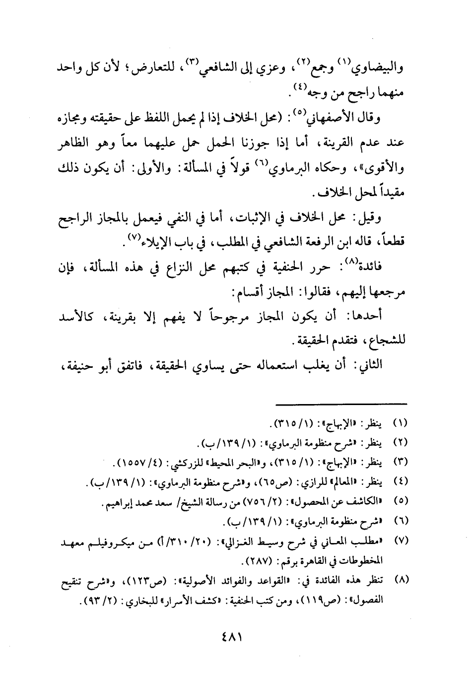 فَائِدَة: حرر الْحَنَفِيَّة فِي كتبهمْ مَحل النزاع فِي هَذِه الْمَسْأَلَة، فَإِن مرجعها إِلَيْهِم، فَقَالُوا: الْمجَاز أَقسَام: