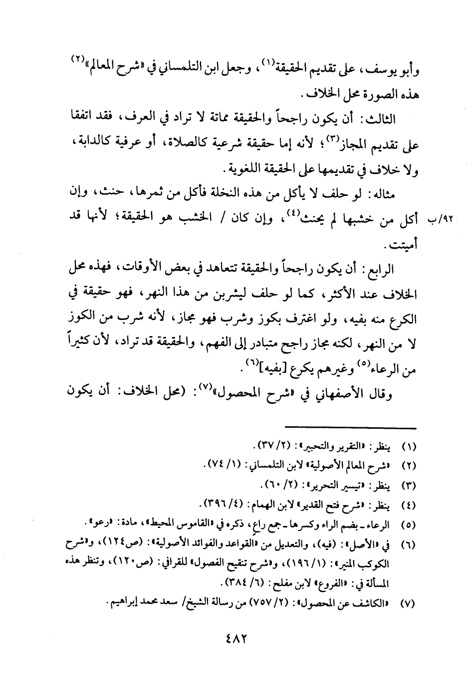 وَأَبُو يُوسُف على تَقْدِيم الْحَقِيقَة، وَجعل ابْن التلمساني فِي " شرح المعالم " هَذِه الصُّورَة مَحل الْخلاف.