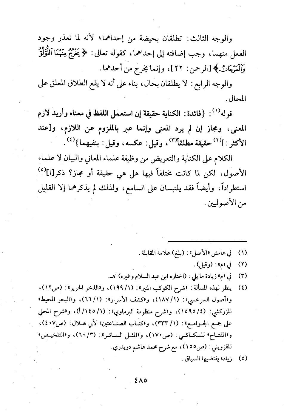 الْكَلَام على الْكِنَايَة والتعريض من وَظِيفَة عُلَمَاء الْمعَانِي وَالْبَيَان لَا عُلَمَاء الْأُصُول، لَكِن لما كَانَت مُخْتَلفا فِيهَا هَل هِيَ حَقِيقَة أَو مجَاز؟ ذكر [ا] اسْتِطْرَادًا، وَأَيْضًا فقد يلتبسان على السَّامع، وَلذَلِك لم يذكرهما إِلَّا الْقَلِيل من الْأُصُولِيِّينَ.