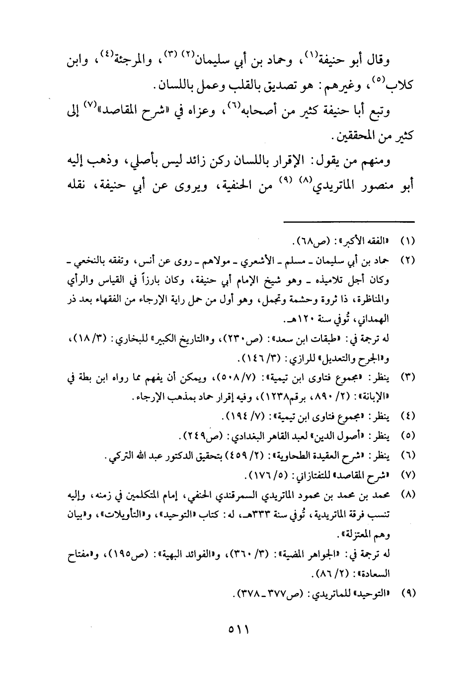 وَتبع أَبَا حنيفَة كثير من أَصْحَابه، وَعَزاهُ فِي " شرح الْمَقَاصِد " إِلَى كثير من الْمُحَقِّقين.