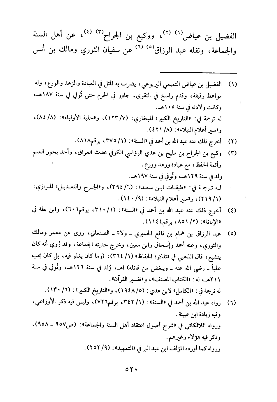 الفضيل بن عِيَاض، ووركيع بن الْجراح، عَن أهل السّنة وَالْجَمَاعَة، وَنَقله عبد الرَّزَّاق عَن سُفْيَان الثَّوْريّ وَمَالك بن أنس