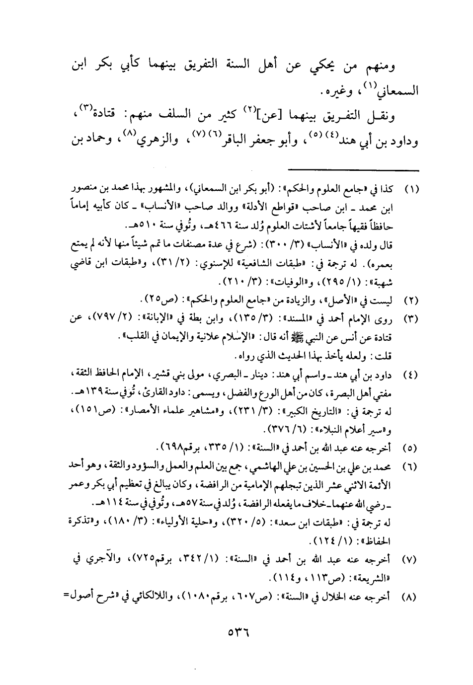 وَنقل التَّفْرِيق بَينهمَا [عَن] كثير من السّلف مِنْهُم: قَتَادَة، وَدَاوُد بن أبي هِنْد، وَأَبُو جَعْفَر الباقر، وَالزهْرِيّ، وَحَمَّاد بن
