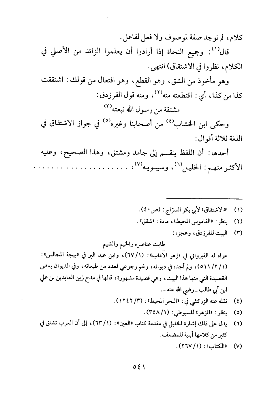 قَالَ: وَجَمِيع النُّحَاة إِذا أَرَادوا أَن يعلمُوا الزَّائِد من الْأَصْلِيّ فِي الْكَلَام، نظرُوا فِي الِاشْتِقَاق) انْتهى.