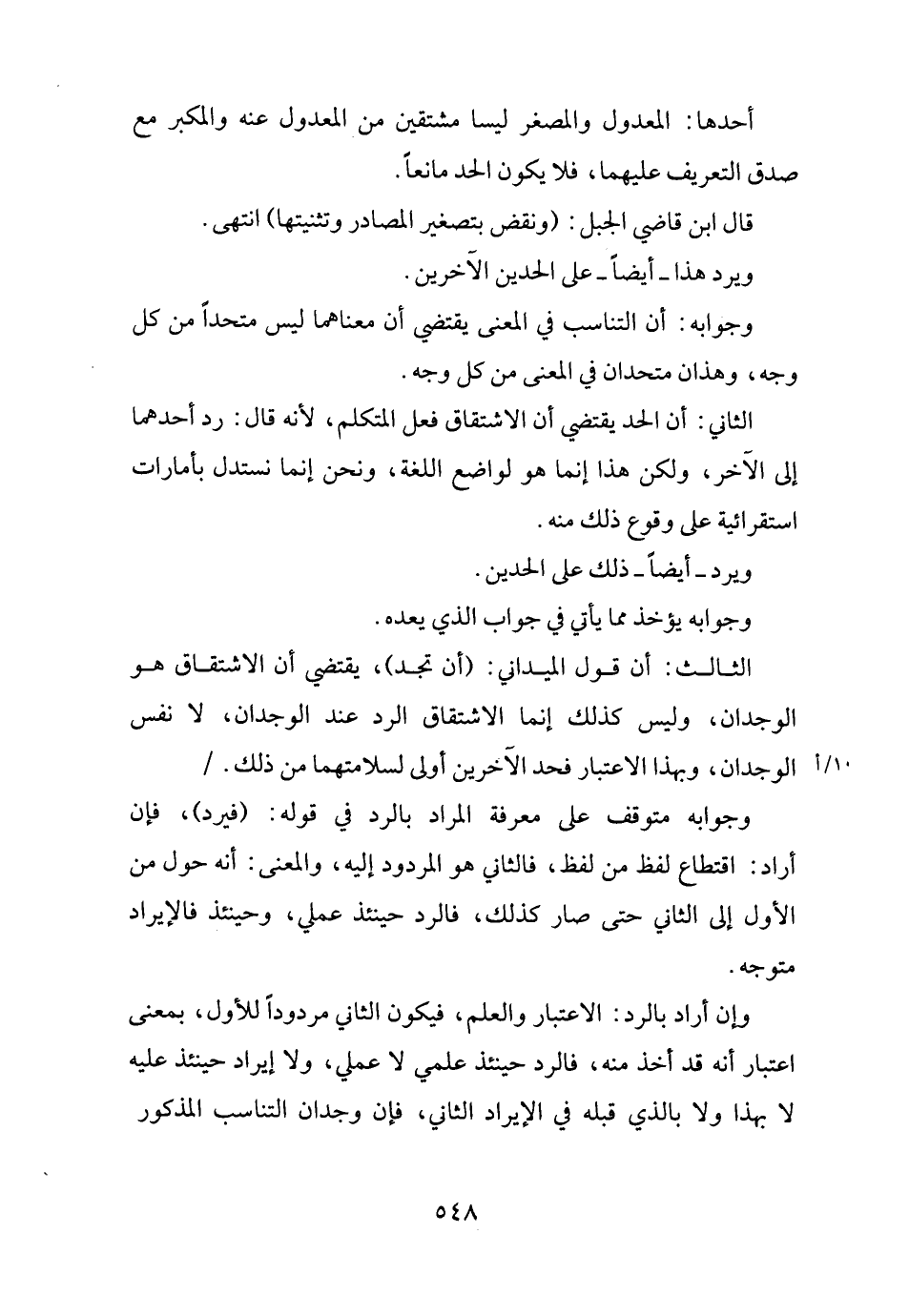 الثَّالِث: أَن قَول الميداني: (أَن تَجِد) ، يَقْتَضِي أَن الِاشْتِقَاق هُوَ الوجدان، وَلَيْسَ كَذَلِك إِنَّمَا الِاشْتِقَاق الرَّد عِنْد الوجدان، لَا نفس الوجدان، وَبِهَذَا الِاعْتِبَار فحد الآخرين أولى لسلامتهما من ذَلِك. /