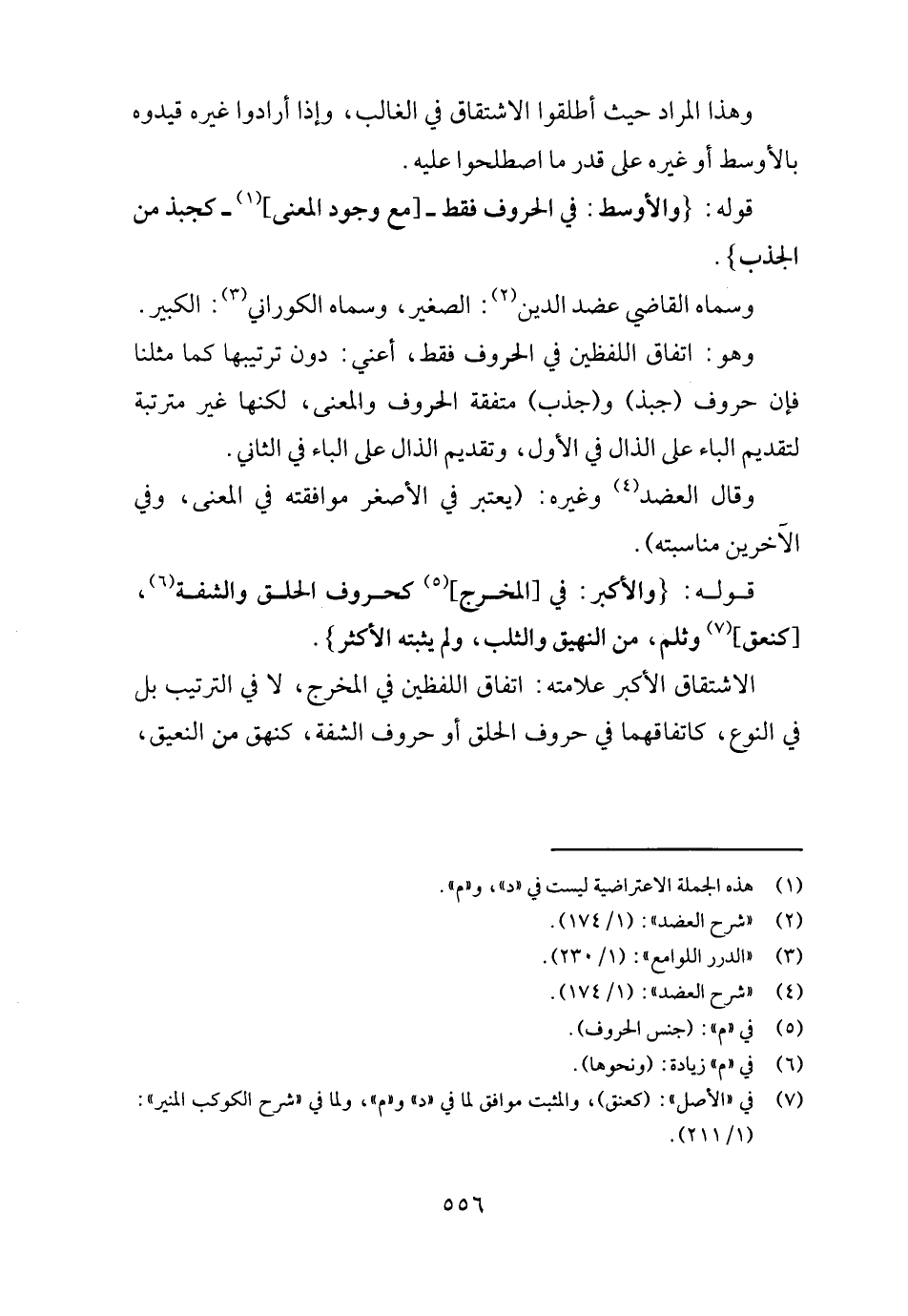 وَهَذَا المُرَاد حَيْثُ أطْلقُوا الِاشْتِقَاق فِي الْغَالِب، وَإِذا أَرَادوا غَيره قيدوه بالأوسط أَو غَيره على قدر مَا اصْطَلحُوا عَلَيْهِ.
