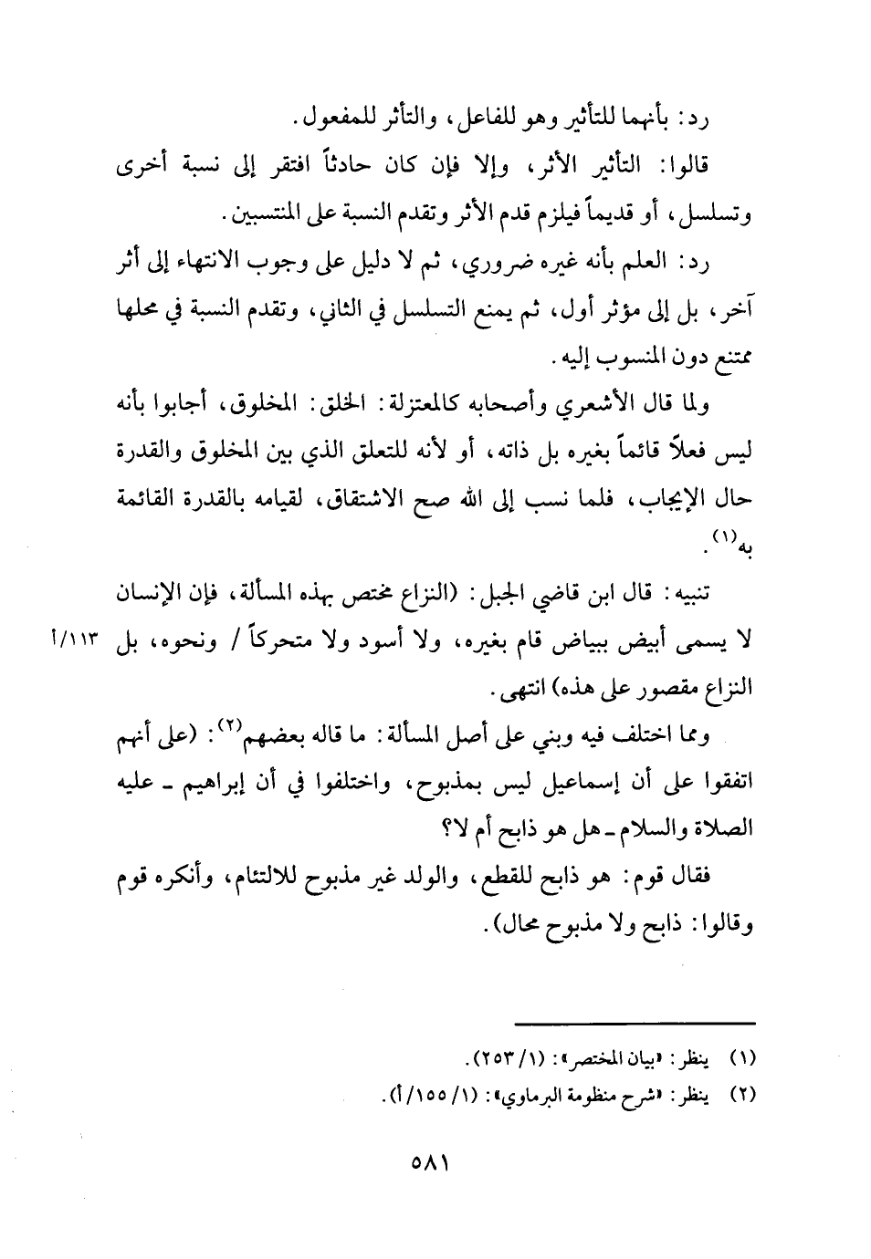 رد: الْعلم بِأَنَّهُ غَيره ضَرُورِيّ، ثمَّ لَا دَلِيل على وجوب الِانْتِهَاء إِلَى أثر آخر، بل إِلَى مُؤثر أول، ثمَّ يمْنَع التسلسل فِي الثَّانِي، وَتقدم النِّسْبَة فِي محلهَا مُمْتَنع دون الْمَنْسُوب إِلَيْهِ.
