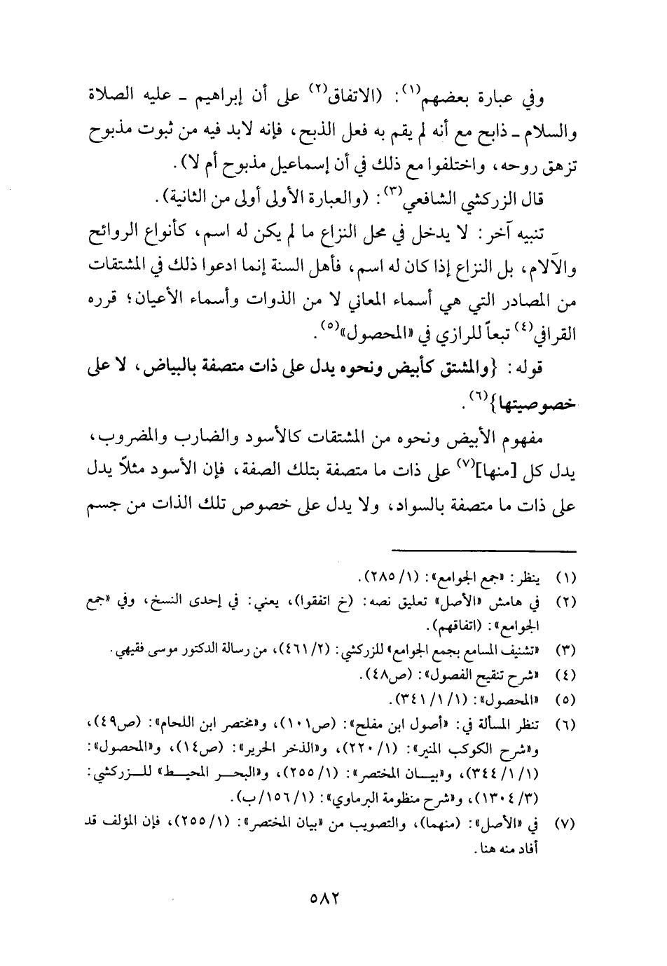 مَفْهُوم الْأَبْيَض وَنَحْوه من المشتقات كالأسود والضارب والمضروب، يدل كل [مِنْهَا] على ذَات مَا متصفة بِتِلْكَ الصّفة، فَإِن الْأسود مثلا يدل على ذَات مَا متصفة بِالسَّوَادِ، وَلَا يدل على خُصُوص تِلْكَ الذَّات من جسم