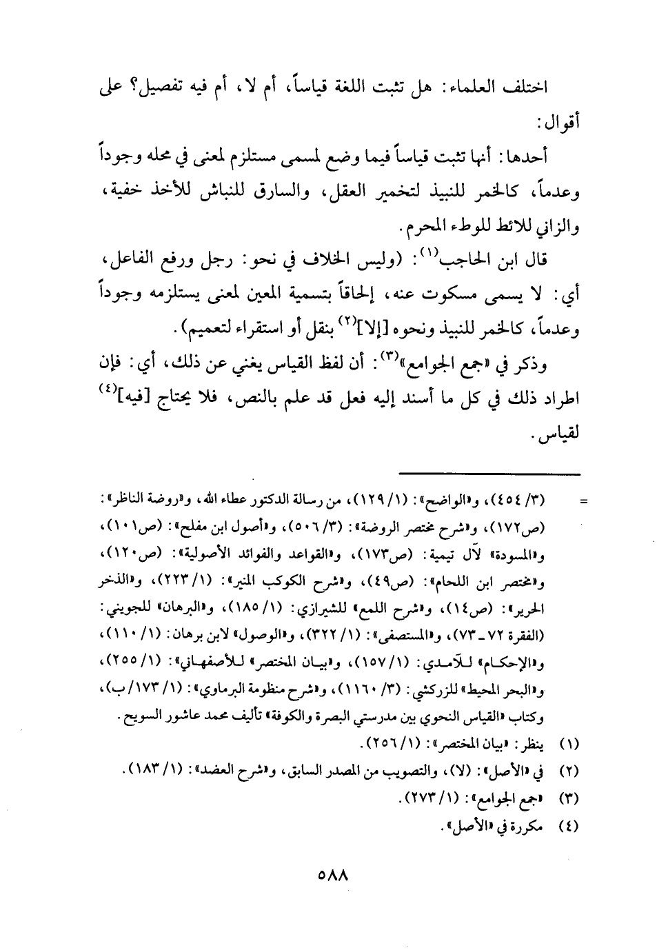 اخْتلف الْعلمَاء: هَل تثبت اللُّغَة قِيَاسا، أم لَا، أَو فِيهِ تَفْصِيل؟ على أَقْوَال: