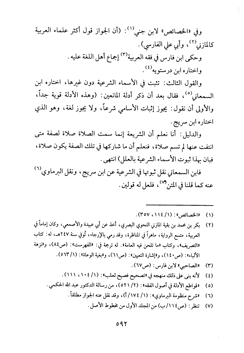 وَفِي " الخصائص " لِابْنِ جني: (أَن الْجَوَاز قَول أَكثر عُلَمَاء الْعَرَبيَّة كالمازني، وَأبي عَليّ الْفَارِسِي) .