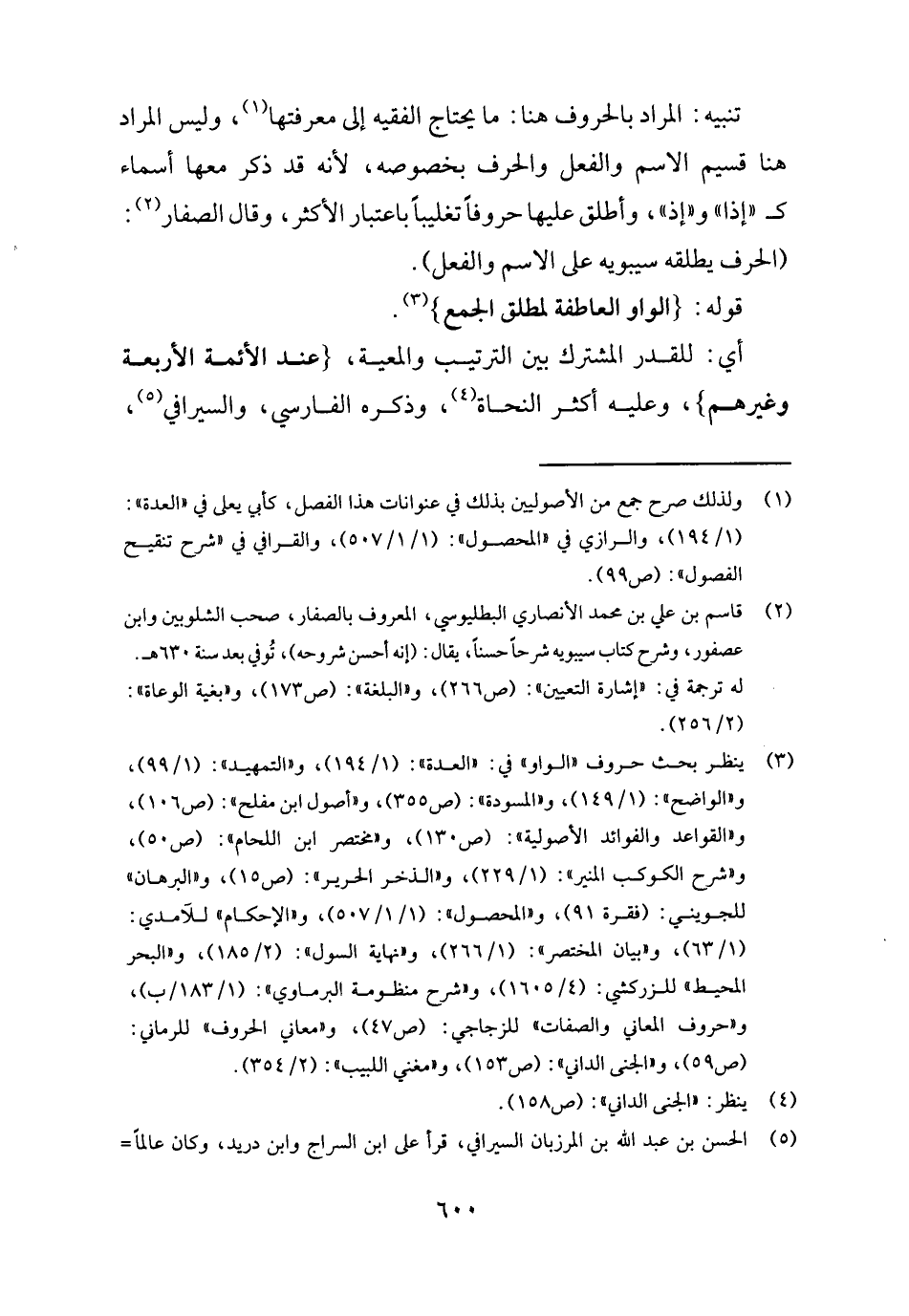 تَنْبِيه: المُرَاد بالحروف هُنَا: مَا يحْتَاج الْفَقِيه إِلَى مَعْرفَتهَا، وَلَيْسَ المُرَاد هُنَا قسيم الِاسْم وَالْفِعْل والحرف بِخُصُوصِهِ، لِأَنَّهُ قد ذكر مَعهَا أَسمَاء ك " إِذا " و " إِذْ "، وَأطلق عَلَيْهَا حروفاً تَغْلِيبًا بِاعْتِبَار الْأَكْثَر، وَقَالَ الصفار: (الْحَرْف يُطلقهُ سِيبَوَيْهٍ على الِاسْم وَالْفِعْل) .