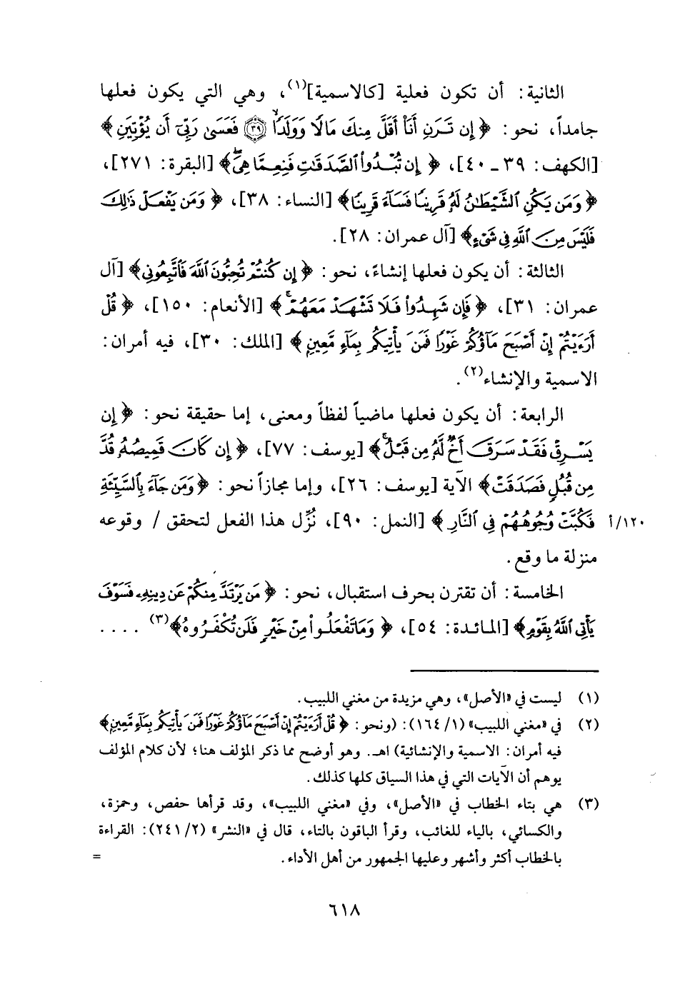 الثَّانِيَة: أَن تكون فعلية [كالاسمية] ، وَهِي الَّتِي يكون فعلهَا جَامِدا، نَحْو: {إِن ترن أَنا أقل مِنْك مَالا وَولدا فَعَسَى رَبِّي إِن يؤتين} [الْكَهْف: ٣٩ ٤٠] ، {إِن تبدوا الصَّدقَات فَنعما هِيَ} [الْبَقَرَة: ٢٧١] ، {وَمن يكن الشَّيْطَان لَهُ قرينا فسَاء قريناً} [النِّسَاء: ٣٨] ، {وَمن يفعل ذَلِك فَلَيْسَ من الله فِي شَيْء} [آل عمرَان: ٢٨] .