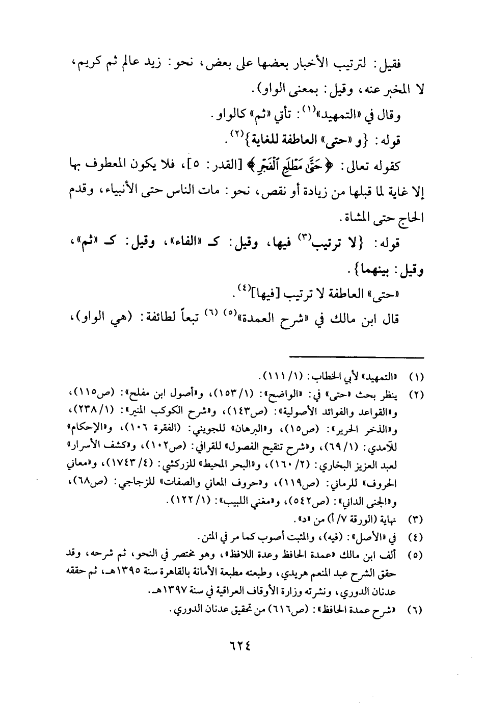 وَقَالَ فِي " التَّمْهِيد ": تَأتي " ثمَّ " كالواو.
