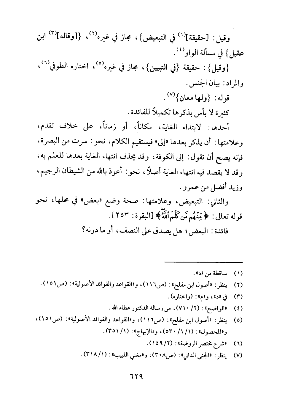 وَالثَّانِي: التَّبْعِيض، وعلامتها: صِحَة وضع " بعض " فِي محلهَا، نَحْو قَوْله تَعَالَى: {مِنْهُم من كلم الله} [الْبَقَرَة: ٢٥٣] .
