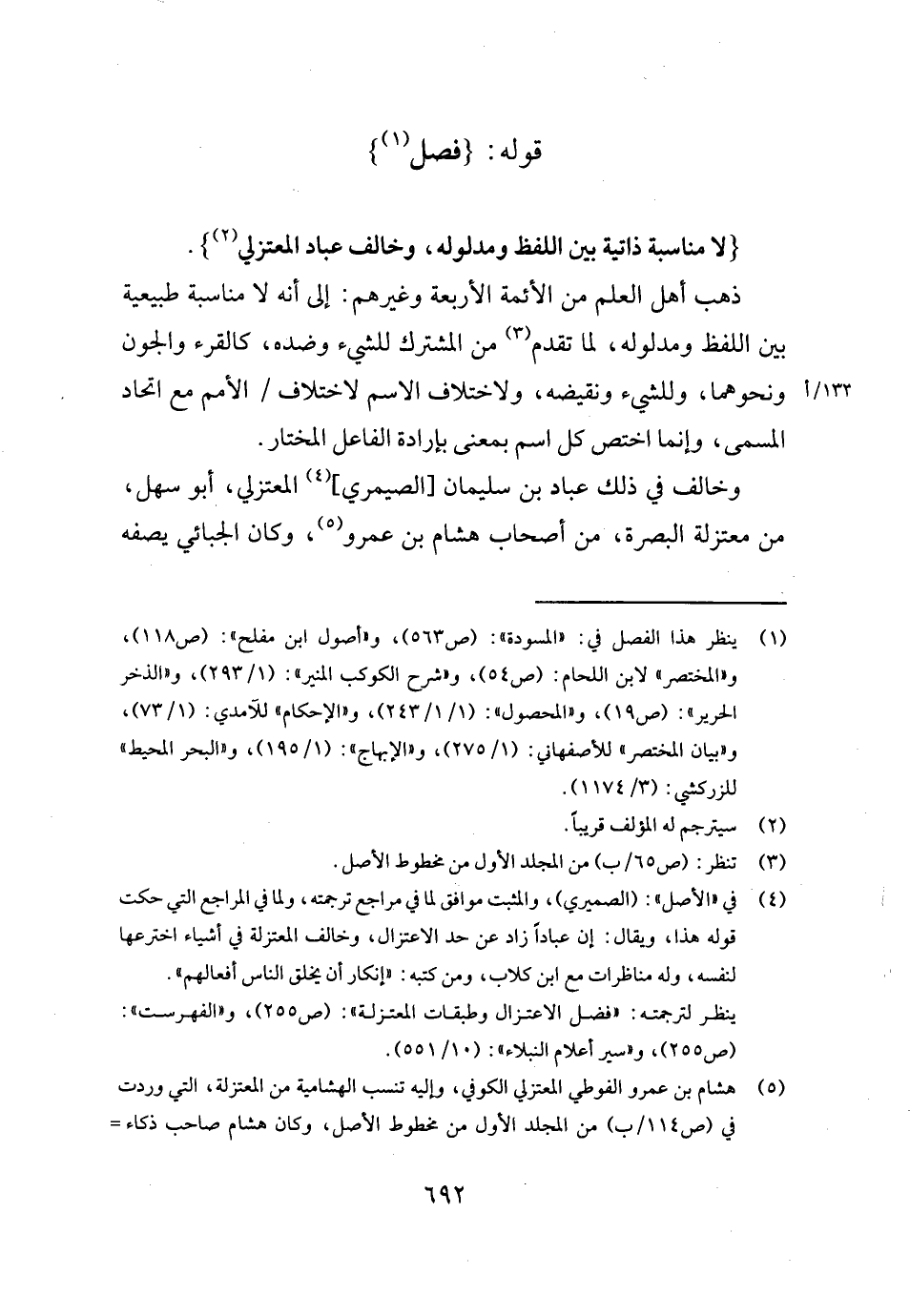 {لَا مُنَاسبَة ذاتية بَين اللَّفْظ ومدلوله، وَخَالف عباد المعتزلي} .