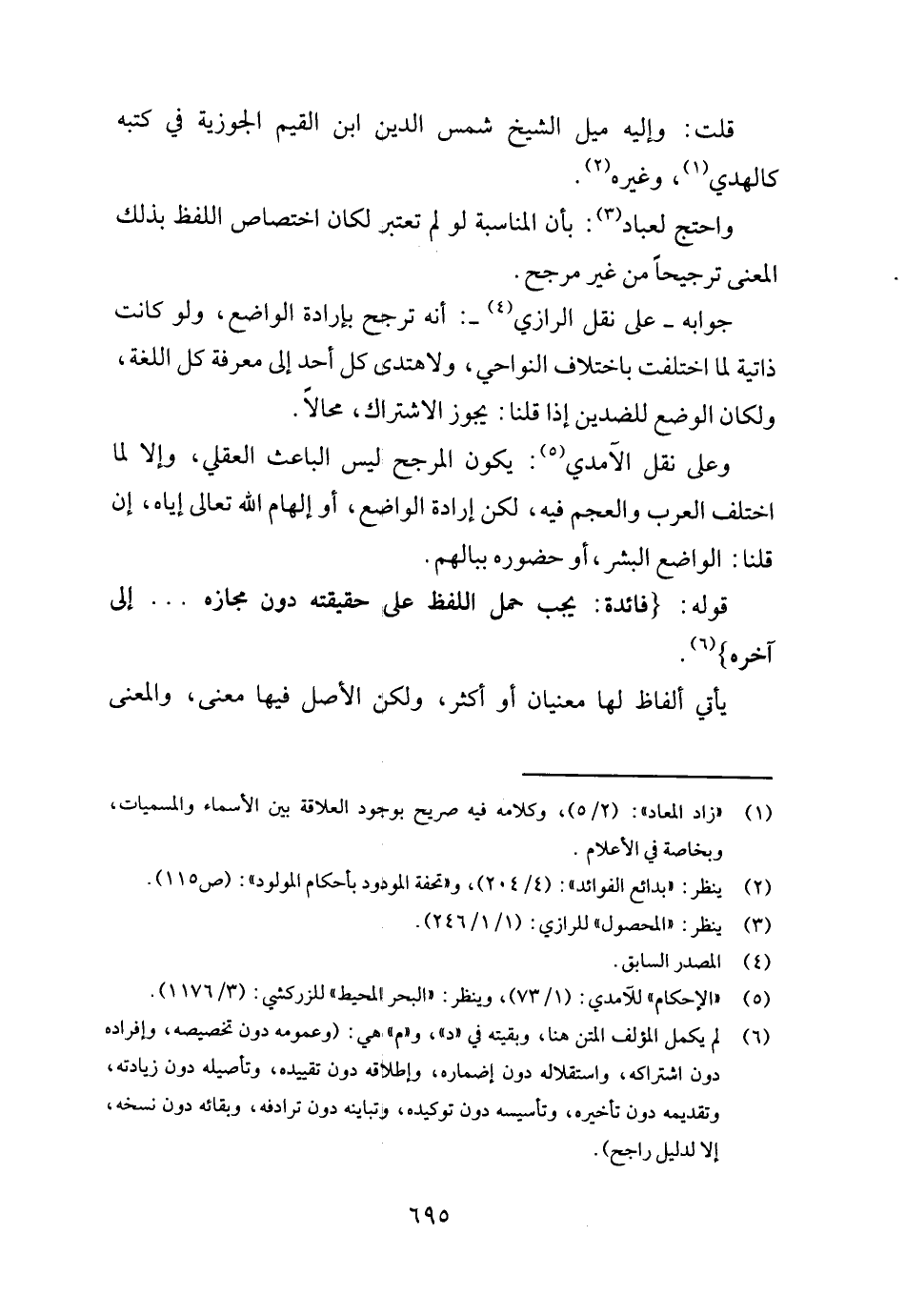 جَوَابه على نقل الرَّازِيّ -: أَنه ترجح بِإِرَادَة الْوَاضِع، وَلَو كَانَت ذاتية لما اخْتلفت باخْتلَاف النواحي، ولاهتدى كل أحد إِلَى معرفَة كل اللُّغَة، ولكان الْوَضع للضدين إِذا قُلْنَا: يجوز الِاشْتِرَاك، محالاً.