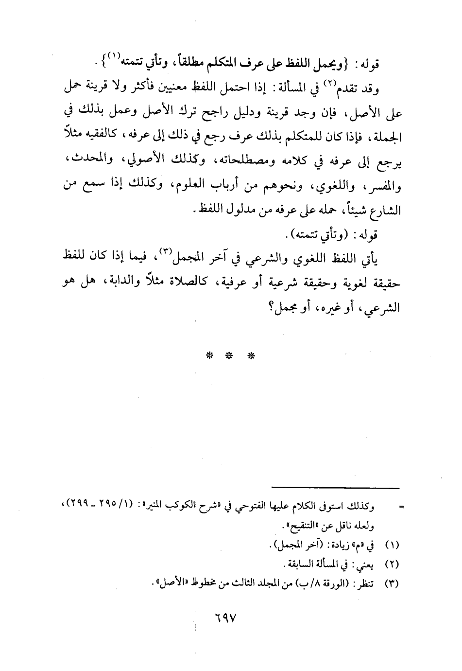 يَأْتِي اللَّفْظ اللّغَوِيّ والشرعي فِي آخر الْمُجْمل، فِيمَا إِذا كَانَ للفظ حَقِيقَة لغوية وَحَقِيقَة شَرْعِيَّة أَو عرفية، كَالصَّلَاةِ مثلا وَالدَّابَّة، هَل هُوَ الشَّرْعِيّ، أَو غَيره، أَو مُجمل؟