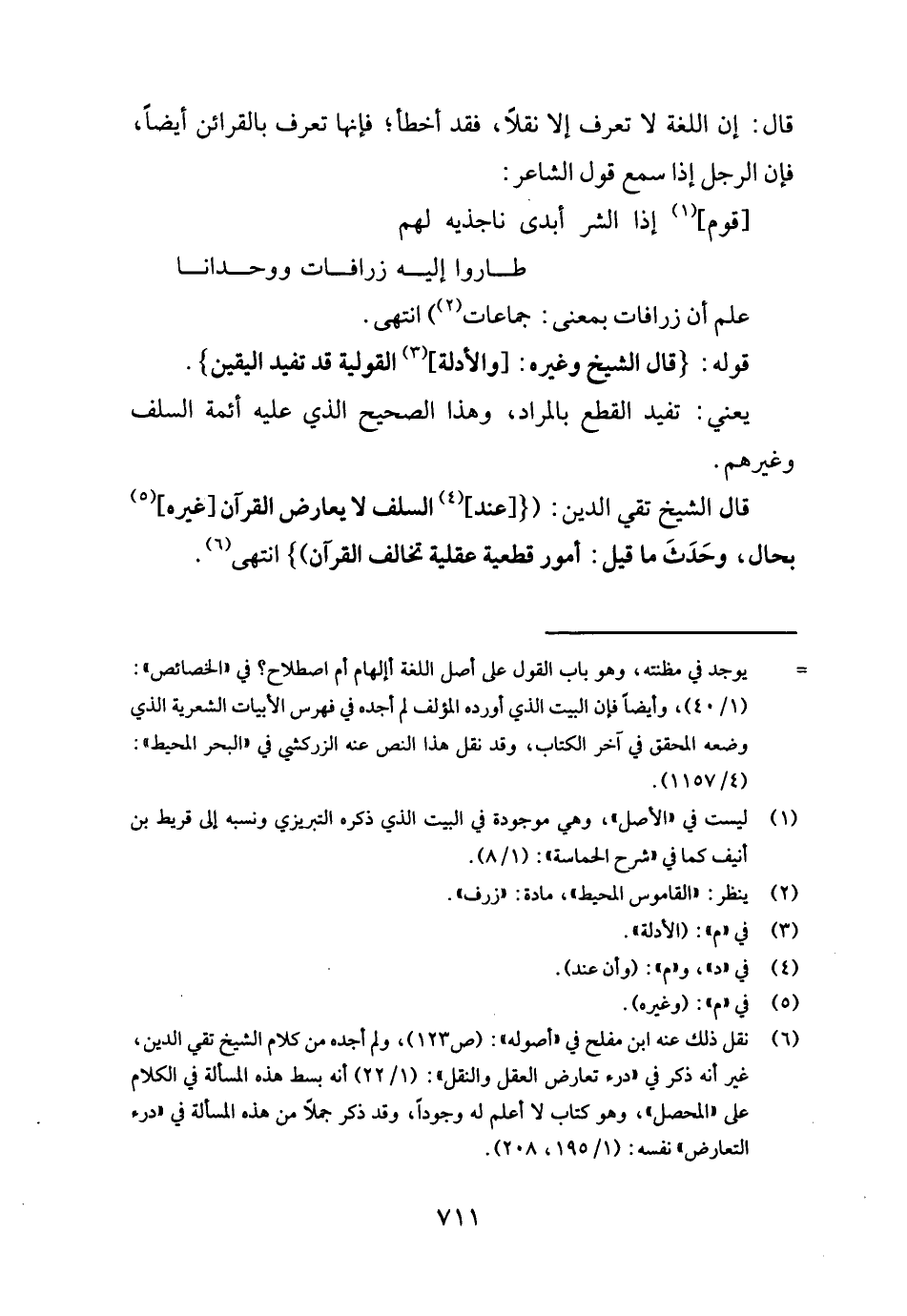 قَوْله: {قَالَ الشَّيْخ وَغَيره: [والأدلة] القولية قد تفِيد الْيَقِين} .