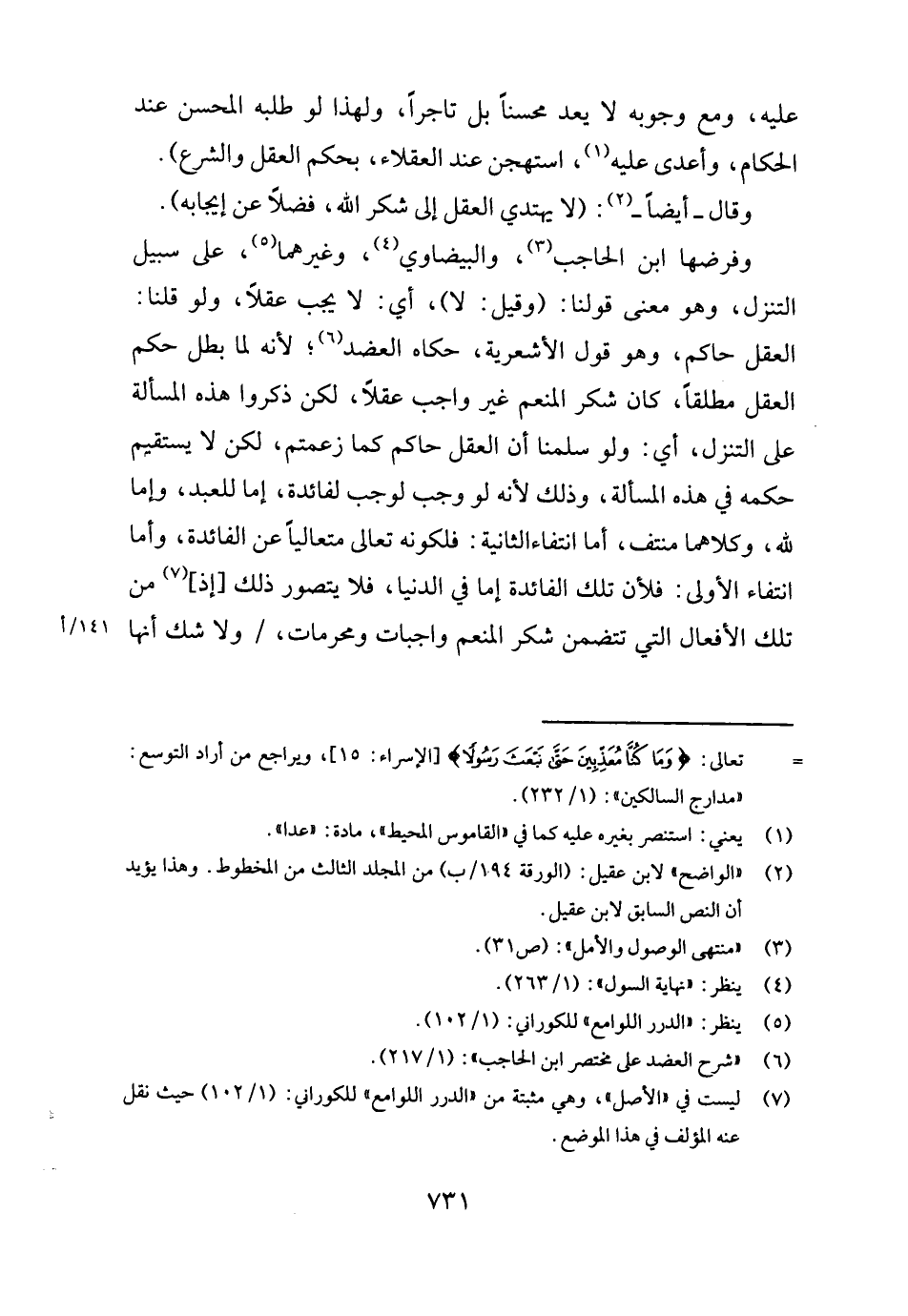وَقَالَ أَيْضا -: (لَا يَهْتَدِي الْعقل إِلَى شكر الله، فضلا عَن إِيجَابه) .